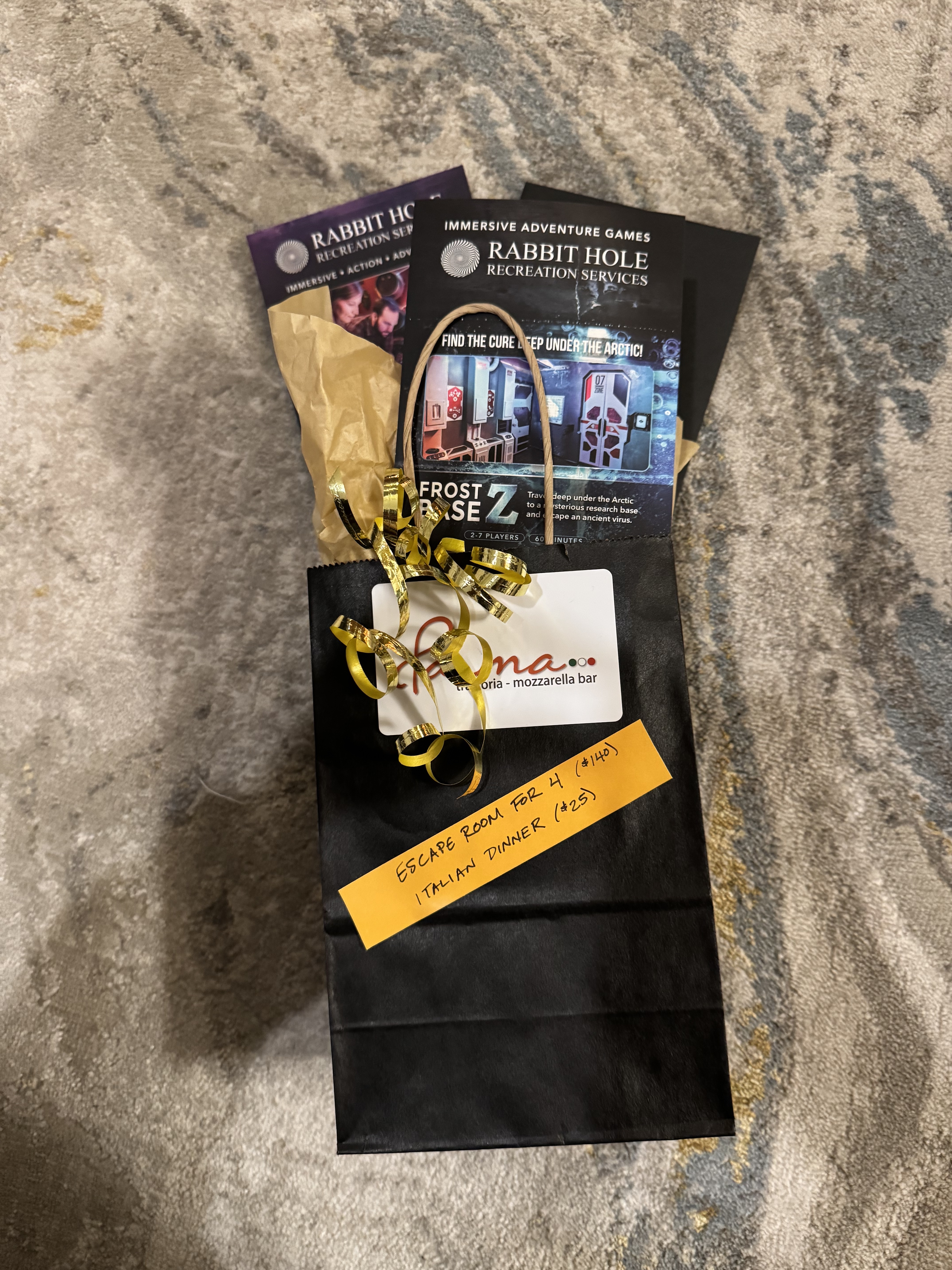Looking for something fun and exciting to do? Bring your friends, family, or coworkers to solve puzzles, hunt for clues, discover secrets, and beat the clock to escape victorious at Rabbit Hole Escape Rooms in Louisville! Gift certificate is for party of 4. Also includes a $25 gift card to Parma to celebrate your night.