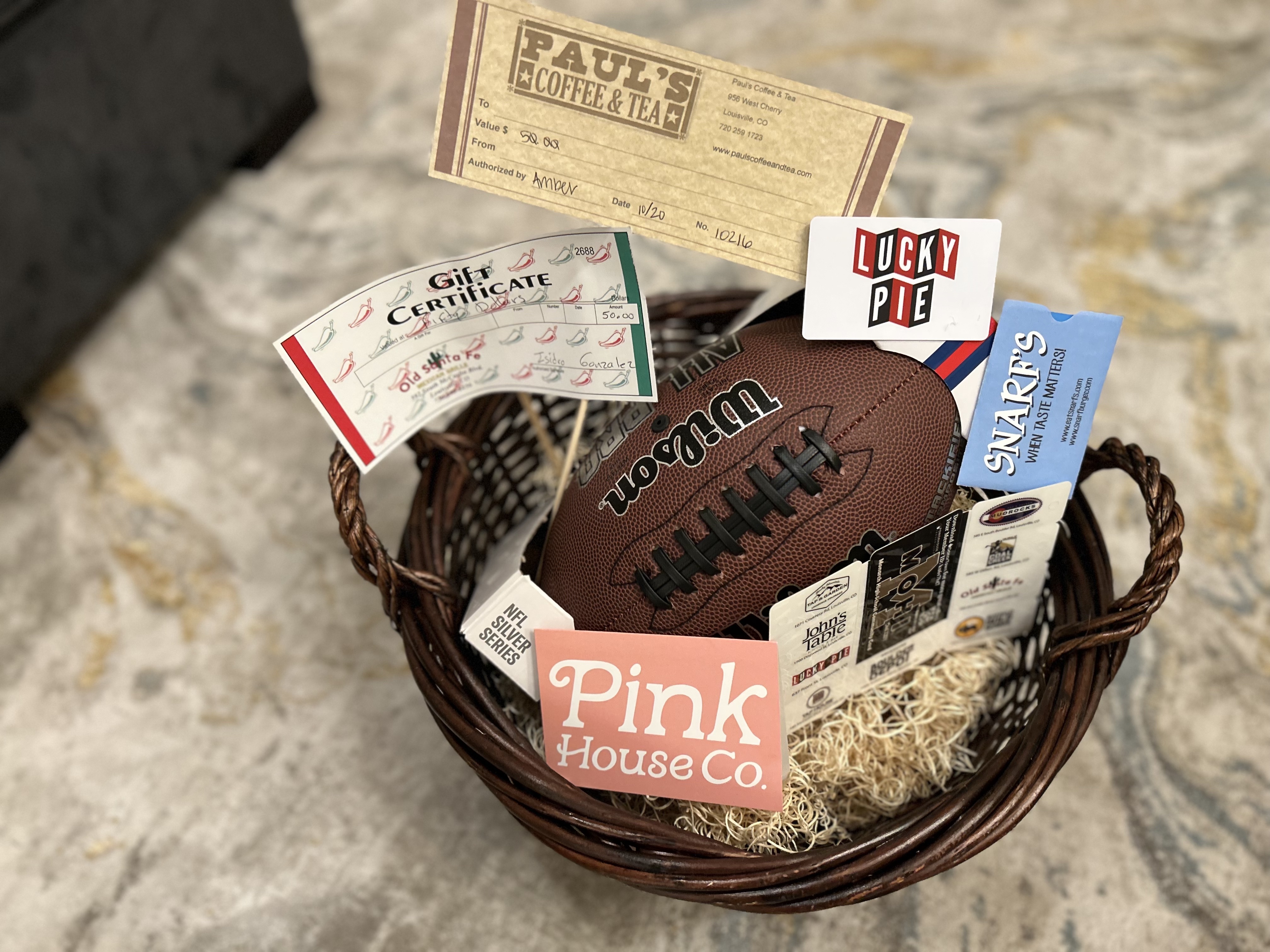 Enjoy gift cards from Snarfs ($25), Lucky Pie ($50), MoHi Gold Card ($30), OSF ($50), Paul’s ($50), Pink House ($50) and a football to toss around.