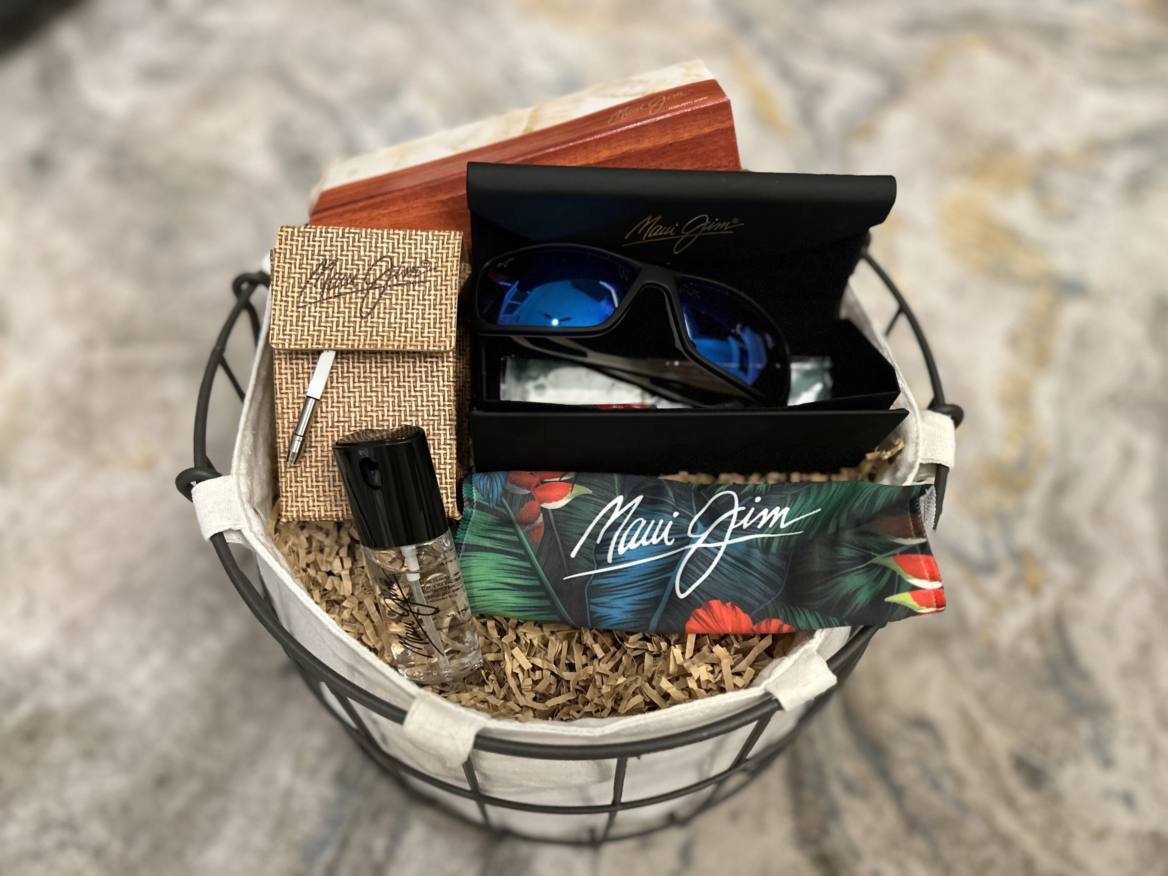 Bring the spirit of the islands wherever you go with this Maui Jim Blue Hawaii Gift Set, crafted for timeless style, premium performance, and everyday adventure. Basket includes Maui Jim ‘Local Kine’ Soft Black Sunglasses, Maui Jim Hard Case, Maui Jim Soft Sleeve, and a Maui Jim Care Kit.